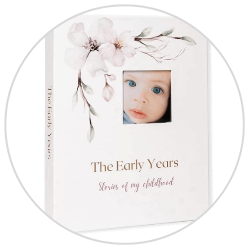 keepsake box, milestone stickers, photo album, clean touch inkless pad and keepsake envelope